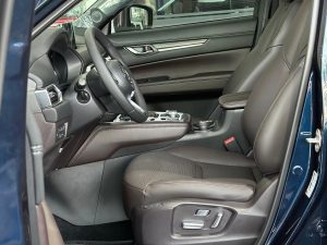 Hàng ghế trước Mazda CX8 được trang bị tính năng ghế chỉnh điện, tích hợp làm ấm. Riêng ghế lái có nhớ vị trí. Thế hệ mới bổ sung thêm bơm lưng ghế, giúp người ngồi ổn định hơn khi xe vào cua.