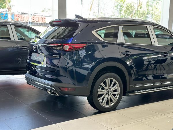 Thân xe Mazda CX8 Với trục cơ sở 2.930 mm, dài hơn CX5 230 mm, Mazda CX8 là một trong những chiếc xe thuộc hàng lớn nhất trong phân khúc SUV/CUV hạng D. Nhìn từ bên hông, thân xe sống động nhờ những đường dập gân sắc sảo. Bên trên có giá nóc, cửa sổ viền chrome. Đặc biệt, cả 4 phiên bản đều được trang bị kính trước chống tia cực tím UV và tia hồng ngoại IR. Gương chiếu hậu và tay nắm cửa cùng màu ngoại thất tạo sự thống nhất.